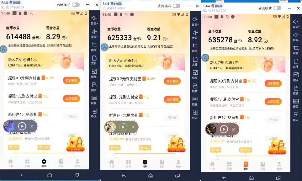 主要就是把号卡到单广1万金币。挂脚本自动看广告 一天20-30