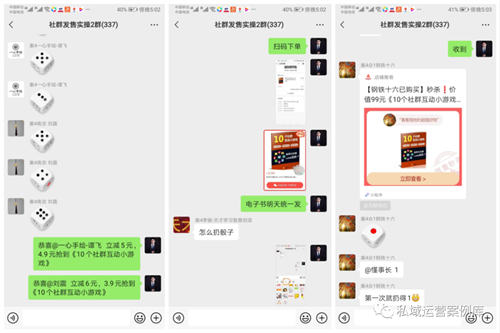 要控场,引导客户下单,参与扔骰子活动,晒图见证。群内促销的产品,价格不要太高,但是价值一定要大。如果是高价产品,可以用阶梯式成交法,引导客户下单。